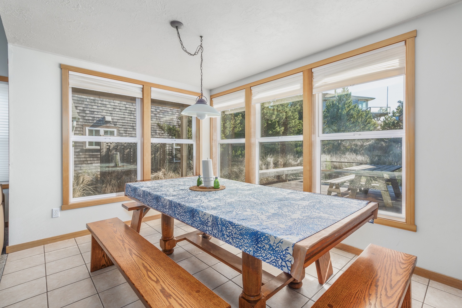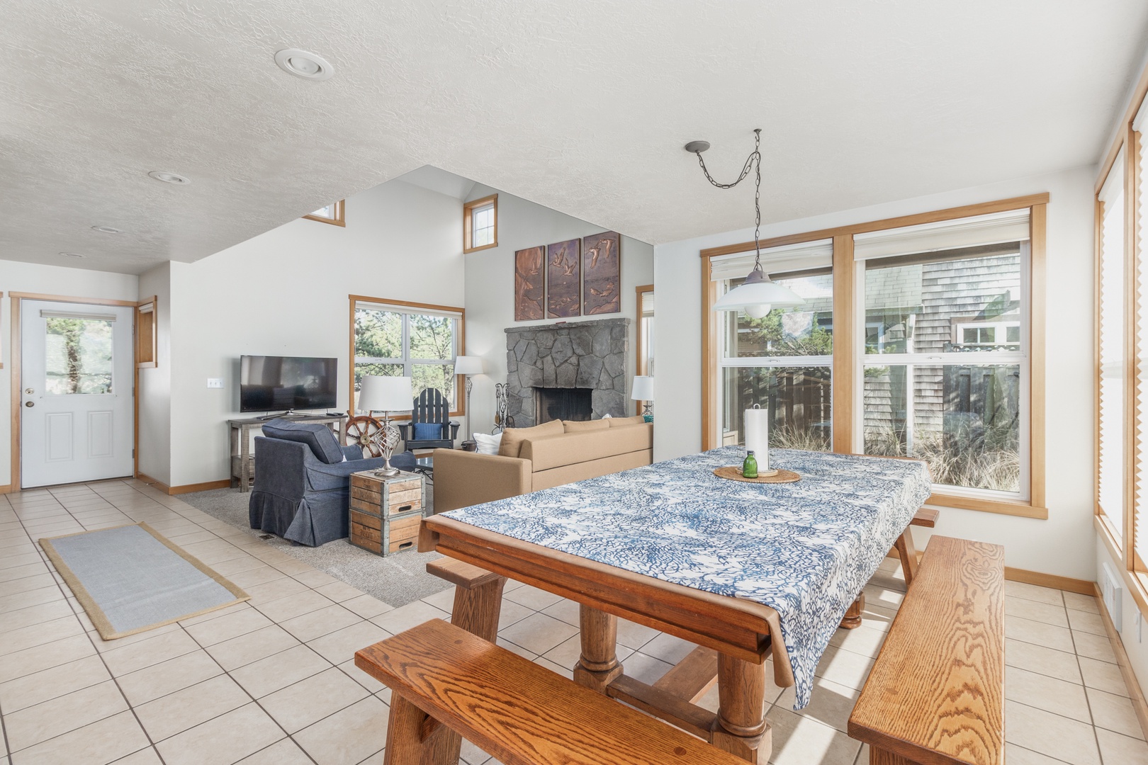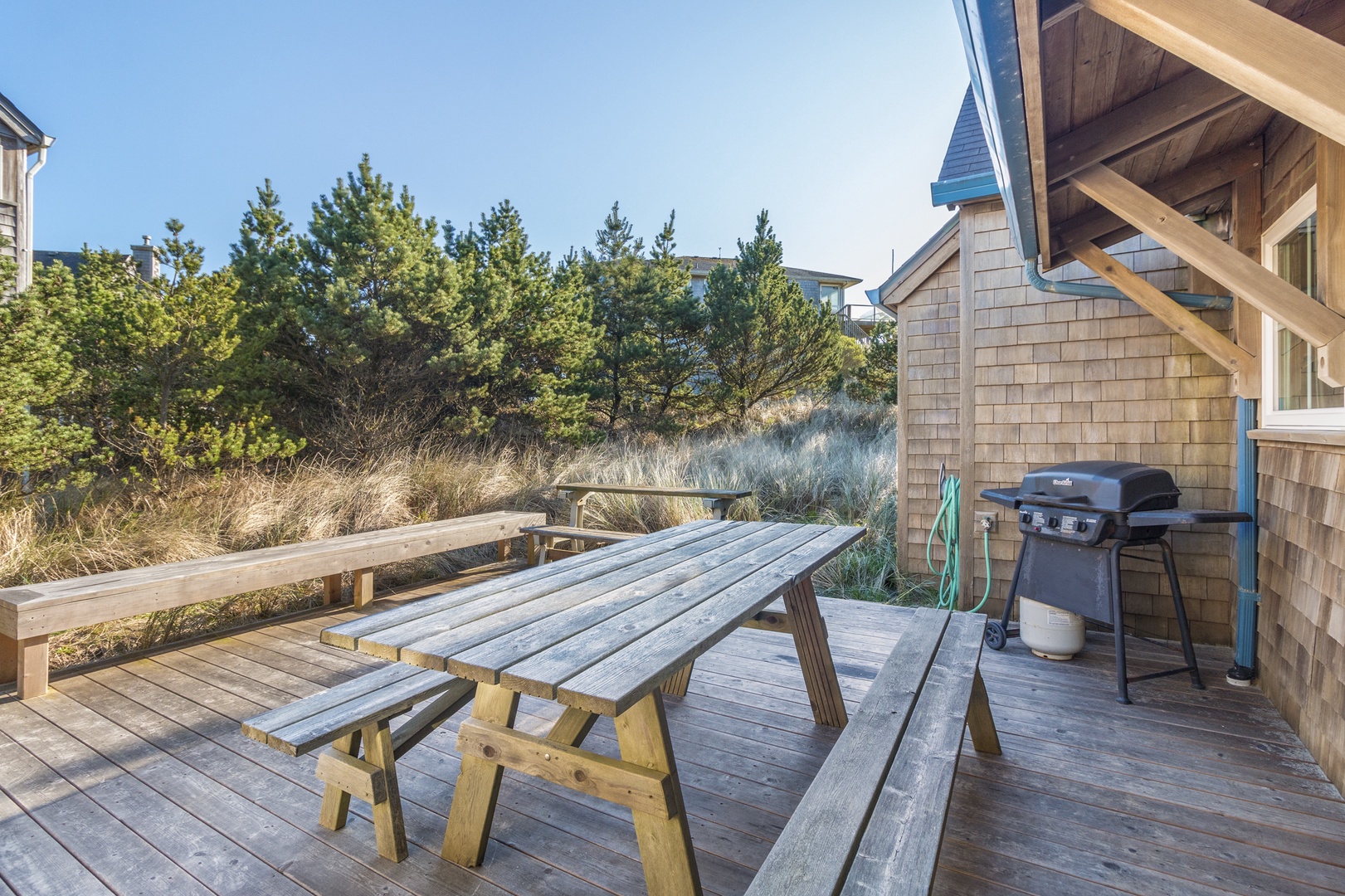 The Playhouse is a three-bed, two-bath located in Pacific City, Oregon, and truly a beach Playhouse! Featuring a large cedar deck with full Southwest exposure for barbecuing, relaxation, and beautiful views of rolling hills of dune-grass. The home is also adorned with a spacious living room, wood-burning fireplace, unique decor, flat-screen TVs, and a fully stocked kitchen. This rental is complete with access to bikes as well as unique beach access via a unique wooden boardwalk. Come see what adventures await you at the Playhouse!